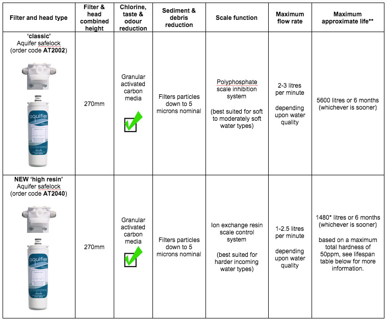 Our aquifier safelock filters are designed to improve the taste, appearance, odour and effects of hard water removing the chlorine at the same time as other unwanted impurities.